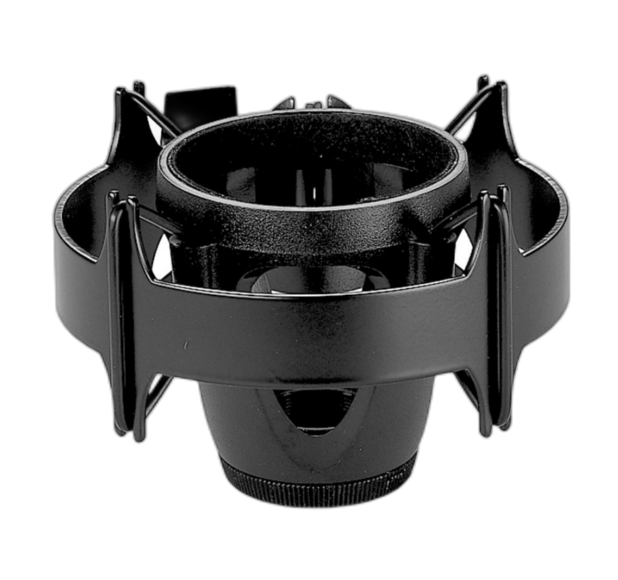 - El micrófono se bloquea de forma segura en el soporte con ShureLock, y la suspensión atenúa el ruido de la vibración